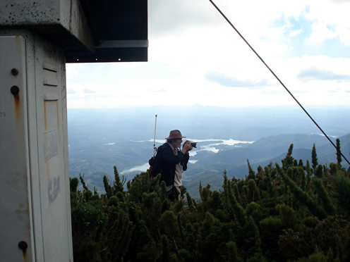 Nessa data tivemos a companhia de PY5KIM – Edson, que sobrevoou o morro de helicóptero antes de seguir viagem para Florianópolis. Edson nos reportou as condições no alto do morro e obteve a bela foto apresentada acima, que dá noção de uma situação bastante comum no Caratuva… névoa com vento forte e frio.