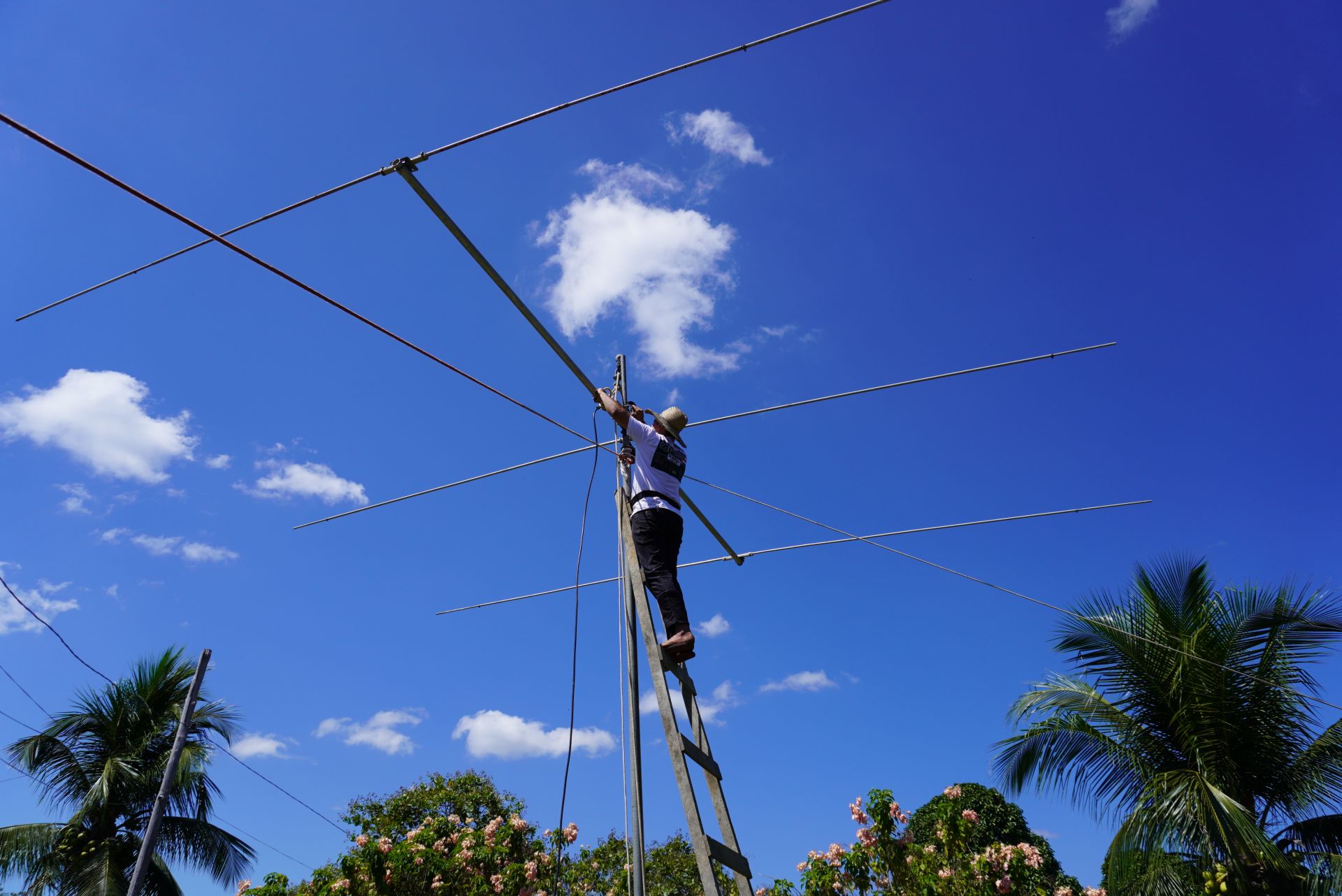 Primeiramente, agradecemos a colaboração de PY5HW Hamilton e PY5IQ Henrique pelo fornecimento do material para a fabricação das antenas. Foram montadas 13 antenas, a maioria pelo Amaral PW8BR, possibilitando a realização de mais de 6 mil contatos durante os 10 dias de operação.